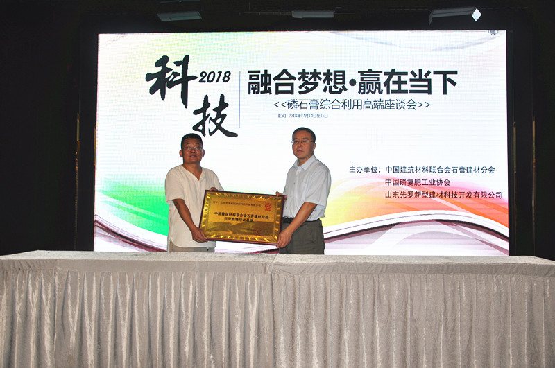 中國(guó)建筑材料聯(lián)合會(huì)培訓(xùn)中心主任周清浩,石膏建材分會(huì)理事長(zhǎng)徐洛屹授予山東先羅“中國(guó)建筑材料聯(lián)合會(huì)石膏建材分會(huì)石膏煅燒培訓(xùn)基地”。